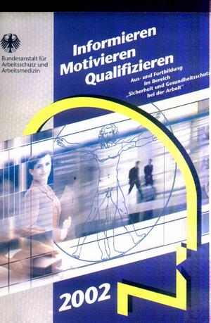 İÇİNDEKİLERInhaltsverzeichnisAllgemeine Hinweise Ausbildung zur Fachkraft für Arbeitssicherheit Lehrgange der Bundesanstalt fur Arbeitsschutz und Arbeitsmedizin - Aufbauseminare Seminare der ,,Ausbildungsgemeinschaft fiir Sicherheitsfachkrafte'', Bremen Seminare und Workshops Sicherheit und Gesundheit aus rechtlicher Sicht - Rechtsfragen des Arbeitsschutzes - Das Arbeitsschutzgesetz und die darauf gesttützten Rechtsverordnungen - EG-Maschinenrichtlinie Umsetzung von Verordnungen, Normen, Richtlinien - Sicherheit und Gesundheitsschutz beim Umgang mit Biologischen Arbeitsstoffen - Neue Qualitat der Arbei- Workshop: Aktionsprogramm ,,Gesunder Rücken'' -Betriebsarztliche ortopadische Diagnostik und Gefahrdungsbeurteilung Bausteine fur Arbeits-, Produktions- und Dienstleistungskonzepte - Gewahrleistung von Sicherheit und Gesundheitsschutz in der offentlichen Verwaltung als Führungsaufgabe - Integration von Sicherheit und Gesundheitsschutz in das Qualitats-management nach DIN EN ISO 9000 ff - PmC - Zyklus 1- 4 Qualifizierungsmodule 1 - 4 - Von der Planung bis zur Demontage Cestaltung der Arbeitsmittel, Arbeitsplatze und der Arbeitsstatten - Arbeits- und Umweltfaktor elektrische, magnetische und elektromagnetische Felder - Erfassung und Beurtteilung der Exposition mit praktischer Einweisung in die Messtechnik und -methodik - Richtiges Sitzen - Probleme mit Software und Hardware - Von früh bis spat: Stehen - gesundheitliche Folgen und konkrete Entlastungsmoglichkeiten - Künstliche Beleuchtung von Arbeitsstatten - Not- und Sicherheitsbeleuchtung - Innenraumbeleuchtung mit Tageslicht - Arbeitsplatzgestaltung fur Behinderte undLeistungsgewandelte - Bauen fur Behinderte - Malinahmen zur Forderung der Arbeitsfahigkeit von Beschaftigten in Werkstatten fur Behinderte - Informationssystem zur beruflichen Rehabilitation REHADAT - Rehabilitations - Datenbank - IMBA,das Verfahren zum Vergleich von Arbeitsanforderungen und menschlichen Fahigkeiten - Einführungsseminar - Grundlagenseminar zur Larmminderung - Larmschutz am Arbeitsplatz ,,Vorschriftenwerk'' - Larmminderung imBetrieb - Aufbauseminar - Gerauschemissionswerte von Maschinen -Ermittlung, Angabe und Nachpriüfung- - Grundlagen der Gerauschmessung - mit Übungen - Vibrationsschutz am Arbeitsplatz - Gehörschaden durch Musik- Seminar fur Multiplikatoren - Musik = Larm!? - Workshop Arbeitsschutz beim Schweifsen - Das moderne Kfz-Unternehmen - Sicherheit und Gesundheitsschutz in Kfz-Betrieben - Handlungshilfen zur Beurteilung der Arbeitsbedingungen an Bildschirmarbeitsplatzen - Sicherheitsstrategien zum Bau, zur Ausrüstung und dem Betrieb von Raucheranlagen - Chemische Belastungen am Arbeitsplatz: Erkennen, Beurteilen,Mindern - Chemische Belastuf gen am Arbeitsplatz bei der Holz- und Kunststoffverarbeitung - Kühlschmierstoffe - Ermittlung und Beurteilung der Gefahrdung durch Gefahrstoffe - Erstellung von Betriebsanweisungen und Durchfuhrung jahrlicher Unterweisungen (gem. §20 Gefahrstoffverordnung) -Sicherheit und Gesundheitsschutz in Einrichtungen der Gemeinschaftsverpflegung Neue Formen der Arbeitsorganisation - Nacht- und Schichtarbeit: Belastungen und Gestaltungsmöglichkeiten Motivation und Handlungskompetenz durch Qualifizierung - Stress! -Ursachen und Bekampfung- - Prasentationstechniken und Arbeitsmethoden im Arbeitsschutz - Die Haufigste Tatigkeit ,,Gehen''- Unfallschwerpunkt Nr.1 - Die Sicherheitsfachkraft - Ihre Rolle und ihr Verstandnis - 5. WorkshopMedieneinsatz im Arbeitsschutz - Sicherheit und Gesundheitsschutz fur Betriebsberater der Handwerksorganisationen - Moderieren leicht gemacht - Kompetenz durch bessere Kommunikation - - Der Sicherheitsdialog -Unterweisen zur Verbesserung der Sicherheit und des Gesundheitsschutzes- - Motivation zum sicherheits- und gesundheitsgerechten Verhalten - Neue Qualitatsanforderungen an die Akteurinnen und Akteure fur Sicherheit und Gesundheit im Betrieb Arbeitsmedizinische Fortbildungsseminare - Moderatorentraining - Grundlagenseminar für Betriebsarzte - Einsatzvon EDV-Technik in der betriebsarztlichen Praxis (2 Seminare mil verschiedenen Zielgruppen) - Betriebliche Gesundheitsförderung zur Prevention arbeitsbedingter Erkrankungen - eine Aufgabe des Betriebsarztes Von der Planung bis zur Evaluation - Moderation - Vertiefungsseminar fur Betriebsarzte Hinweise zu Kooperationsseminaren Hinweise zur Nutzung von Seminarkonzeptionen Arbeitsmedizinische Informationsveranstaltungen - Neue Wege in der Erfassung und Bewertung der biologischen Potenz von Bioaerosolen - Abschlussworkshop des Projektes ,,Gesundheitliche Auswirkungen flexibler Arbeitsformen'' (F 560) - Biopsychosoziale Mechanismen der Stressprotektion - Herzschrittmacher und Beruf - Zur Abhangigkeit von Kontaktsensibilisierungen gegen ubiquitare Allergene von arbeitsbedingten sowie individuellen Faktoren - Auswertung von Daten des Informationsverbundes Dermatologischer Kliniken (IVDK) - LWS-Erkrankungen in Abhangigkeit von der physischen Arbeitsbelastung - Risikoanalyse anhand emer historischen Kohortenstudie bei zwei Berufsgruppen m Wismutbergbau - Arbeitsmedizinische Betreuung im Handwerk -Modelle und deren Bewertung - Handlungshilfe zur Beurteilung der Arbeitsbedingungen in der Bundes-verwaltung: Evaluation des Bausteins ,,Psychische Belastung'' - Modelle alternsgerechter Arbeit aus Kleinbetrieben des Handwerks - Biomonitoring - Rückengerechter Patiententransfer: Evaluation eines modernen Pflegekonzeptes - Moglichkeiten der Bestimmung von Biomarkern im Speichel in Studien milt arbeitsmedizinischer Fragestellung - Arbeitsmedizinische Vorsorge - noch up to date? - Moglichkeiten, Chancen und Grenzen - Einfluss arbeitsbedingter Faktoren auf die Reproduktion Dresdner Treffpunkt Sicherheit und Gesundheitsschutz - Larmmessungen am Arbeitsplatz - Gefahrdungsbeurteilung - Erfahrungen, Hilfsmittel - Planen und Einrichten von Baustellen - Sichere Maschinen - Anforderungen an Maschinen beim Inverkehrbringen und bei der Inbetriebnahme - Gesund b