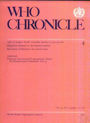 İÇİNDEKİLER1986-87 budget: Health Assembly decides on zero growthPlenary highlights Flexible programming, conservative financing Strengthening cooperation and leadership for health for all Malaria control Disability Control of chronic noncommunicable diseases Women, health and development Balance among WHO staff Cooperation with Africa Other decisions of the Health Assembly Diagnostic imaging for developing countriesP.E.S. Palmer Prevention of blindness: the current focusBjorn Thylefors From the Regions Americas: Health effects of the Chilean earthquake Eastern Mediterranean: Prevention of blindness Europe: Toxoplasmosis Control of pollution of the Mediterraneans Notes and news Malaria chemoprophylaxis for travellers-Technology for health care: assessing its real value Supplement: Proposed International Nonproprietary Names for Pharmaceutical Substances: List 54 (distributed separately) ![]() |