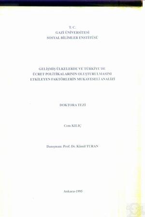 Gelişmiş Ülkelerde Ve Türkiye'de Ücret Politikalarının Oluşturulmasını Etkileyen Faktörlerin Mukayeseli Analizi