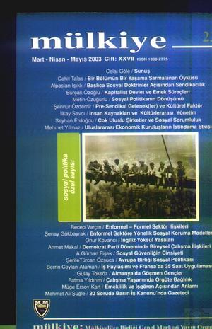 İÇİNDEKİLERİçindekilerSayı Editöründen Sunuş Prof. Dr. Celal GÖLE Bir Bölümün Bir Yaşama Sarmalanan Öyküsü Prof. Dr. Cahit TALAŞ Başlıca Sosyal Doktrinler Açısından Sendikacılık Prof. Dr. Alpaslan IŞIKLI Devlet Fabrikaya Girince: Kapitalist Devlet ve Emek Süreçleri Dr. Burçak ÖZOĞLU Sosyal Politikanın Dönüşümü ya da Sıfatın Suretten Kopuşu Dr. Metin ÖZUĞURLU Pre-Sendikal Gelenek(ler) ve Kültürel Faktör: 'Ekonomik İnsan'a Karşı 'İslam İnsanı' mı? Dr. Şennur ÖZDEMİR Küreselleşme, İnsan Kaynakları ve Kültürlerarası Yönetim Yard. Doç. Dr. İlkay SAVCI Çok Uluslu Şirketler, İşçi Haklan ve Sosyal Sorumluluk Öğr. Gör. Seyhan ERDOĞDU Uluslararası Ekonomik ve Mali Kuruluşların İstihdam Üzerindeki Etkisi: Türkiye Örneği Araş. Gör. Mehmet YILMAZEnformel - Formel Sektör İlişkileri: Bağımlılık mı, Özerklik mi? Doç Dr. Recep VARÇIN Enformel Sektöre Yönelik Sosyal Koruma Modelleri Araş. Gör. Şenay GÖKBAYRAK 'Hayır' Anlayışından Sosyal Devlete: İngiliz Yoksul Yasaları Araş. Gör. Onur KOVANCI Demokrat Parti Döneminde Bireysel Çalışma İlişkilerine Yönelik Hukuksal Düzenleme ve Uygulamalar Prof. Dr. Ahmet MAKAL Sosyal Güvenliğin Cinsiyeti Prof. Dr. A.Gürhan FİŞEK Avrupa Birliği Sosyal Politikası ve Sosyal Politikanın Avrupa BütünleşmeTeorisindeki Rolü: Tarihsel Gelişme ve Geleceğe İlişkin Beklentiler Doç. Dr. Şerife Türcan ÖZŞUCA İş Paylaşımı ve Fransa'da 35 Saat Uygulaması Doç. Dr. Berrin CEYLAN-ATAMAN Almanya'daki Göçmen Gençlerin Eğitim ve İşsizlik Sorunları. Doç. Dr. Gülay TOKSÖZ Çalışma Yaşamında Örgüte Bağlılık ile Örgütsel Adalet, Örgüt Temeli Özsaygı ve Bazı Kişisel ve Örgütsel Değişkenlerin İlişkisi Dr. Fatma YILDIRIM Emeklilik ve İşgören Açısından Anlamı Dr. Müge ERSOY-KART 30 Soruda Basın İş Kanunu'nda Gazeteci Yard. Doç. Dr. Mehmet Ali ŞUĞLE ![]() |