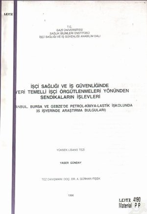 İÇİNDEKİLERİÇİNDEKİLERTABLOLAR DİZİNİ GRAFİKLER DİZİNİ KISALTMALAR 1.GİRİŞ 2. GENEL BİLGİLER 2.1 İŞÇİ SAĞLIĞI VE İŞ GÜVENLİĞİ 2.1.1 İşçi Sağlığı ve iş Güvenliğinin Boyutları 2.1.2. 1989-1993 Döneminde Ülkemizde İş Kazası Verileri 2.13 Avrupa Topluluğu ile Ülkemizdeki Karşılaştırmalı İş Kazası Verileri 2.2. SENDİKALAR VE İŞÇİ SAĞLIĞI İŞ GÜVENLİĞİ 2.2.1Tarihsel Süreç içerisinde Sendikalar 2.2.1.1. Sendikaların Ortaya Çıkışı ve Gelişmesi 2.2.1.2. Türkiye'de Sendikaların Ortaya Çıkışı ve Gelişmesi 2.2.2.Sendikaların Amaçları ve İşçi Sağlığı ve iş Güvenliğinde işlevleri 2.2.2.1. Sendikaların Amaçları ve işçi Sağlığı ve iş Güvenliği 2.2.2.2. işçi Sağlığı ve iş Güvenliğinde Sendikal Etkinlikler ve Araçlar 2.2.3. Sendikal Demokrasi ve işçi Sağlığı ve İş Güvenliği 2.3. İŞÇİLERİN YÖNETİME KATILIMI VE İŞÇİ SAĞLIĞI İŞ GÜVENLİĞİ 2.3.1 Genel Olarak işçilerin Yönetime Katılımı 2.3.2. işçi Sağlığı ve iş Güvenliğinde işçilerin Yönetime Katılımı 2.3.2.1. Uluslararası Düzenlemelerde işçi Sağlığı ve İş Güvenliğinde İşçilerin Yönetime Katılımı 2.3.2.2. Türkiye'de Yasal Düzenlemelerde işçi Sağlığı ve iş Güvenliğinde İşçilerin Ulusal Düzeyde Yönetime Katılımı 2.3.2.3. işyeri işçi Sağlığı ve iş Güvenliği Kurulları 2.3.2.3.1 İşçi Sağlığı ve iş Güvenliği Kurullarının Ortaya Çıkışı 2.3.2.3.2. İşçi Sağlığı ve İş Güvenliğinde İşyeri işçi Sağlığı ve İş Güvenliği Kurullarının Önemi 2.3.2.3.3. Türkiye'de Yasal Düzenlemelerde İşyeri İşçi Sağlığı ve İş Güvenliği Kurulları 2.3.2.4. işçi Sağlığı ve iş Güvenliğine Yönelik işyeri Düzeyinde Diğer işçi Örgütlenmeleri 2.3.2.5. Bazı Avrupa Ülkelerinde İşçi Sağlığı ve iş Güvenliğinde işçilerin Yönetime Katılımı 3. MATERYAL VE YÖNTEM 3.1 ARAŞTIRMA ALANININ SEÇİMİ 3.2. ARAŞTIRMA ALANININ TANITIMI 3.3. ARAŞTIRMANIN TİPİ 3.4. ARAŞTIRMA EVRENİNİN TANITIMI 3.5. ARAŞTIRMA ÖRNEKLEMİ VE ARAŞTIRMAYA KATILMA ORANI 3.6. ARAŞTIRMANIN UYGULANMASI 3.7. ARAŞTIRMA VERİLERİNİN DÜZENLENMESİ VE ÇÖZÜMLENMESİ 3.8. ARAŞTIRMADA KARŞILAŞILAN GÜÇLÜKLER 4. BULGULAR 4.1. İŞLETMELERİN TANITIMI 4.2. TEMSİLCİLERİN TANITIMI 4.2.1. Kişisel Bilgiler 4.2.2. Çalışma Yaşamına İlişkin Bilgiler 4.2.3. Sendikal Bilgiler 4.2.4. İşçi Sağlığı ve iş Güvenliği Görevleri ile ilgili Bilgiler 4.3. İŞÇİ SAĞLIĞI VE İŞ GÜVENLİĞİ İLE İLGİLİ BULGULAR 4.3.1 işyerlerinde İşçi Sağlığı ve iş Güvenliği Durumu ile ilgili Bilgiler 4.3.2. İşyerlerinde İşçi Sağlığı ve İş Güvenliği Çalışmaları ile ilgili Bilgiler 4.3.3. işyerlerinde İşçi Sağlığı ve iş Güvenliğinde Sendikal Çalışma ile ilgili Bilgiler NOTLAR(İstanbul, Bursa ve Gebze'de Petrol-Kimya-Lastik İşkolunda 25 İşyerinde Araştırma Bulguları) Gazi Üniversitesi Sağlık Bilimleri Enstitüsü İşçi Sağlığı ve İş Güvenliği Anabilim Dalı Yüksek Lisans Tezi ![]() |
