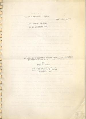The Rise In Children's Labour Force Participation in Metropolitan Egypt 1960-1976