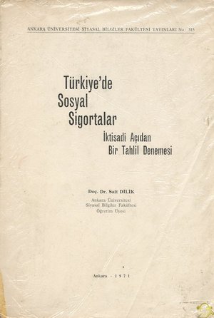 Kitap : Türkiye'de Sosyal Sigortalar İktisadi Açıdan Bir Tahlil Denemesi