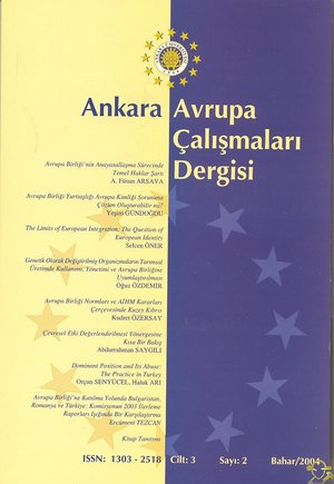İÇİNDEKİLERİÇİNDEKİLER AB'nin Anayasallaşma Sürecinde Temel Haklar Şartı A.Füsun ARSAVA 1 Avrupa Birliği Yurttaşlığı Avrupa Kimliği Sorununa Çözüm Oluşturabilir mi? Yeşim GÜNDOĞDU 11 The Limits of European Integration: The Question of European Identity SelcenÖNER 27 Genetik Olarak Değiştirilmiş Organizma'ların Tarımsal Üretimde Kullanımı, Yönetimi ve Avrupa Birliği'ne Uyumlaştırılması Oğuz ÖZDEMİR 37 Avrupa Birliği Normları ve AÎHM Kararları Çerçevesinde Kuzey Kıbrıs Kudret ÖZERSAY 45 Dominant Position and Its Abuse: The Practice in Turkey Orçun SENYÜCEL - M.Haluk ARI 65 Avrupa Birliği'nin Çevresel Etki Değerlendirmesi Yönergesine Kısa Bir Bakış Abdurrahman SAYGILI 81 Avrupa Birliği'ne Katılma Yolunda Bulgaristan, Romanya ve Türkiye: Komisyonun 2003 İlerleme Raporları Işığında bir Karşılaştırma Ercüment TEZCAN 95 Kitap İncelemesi 111 ![]() |