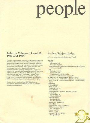Kitap : people-Index to Volumes 11 and 12 1984 and 1985
