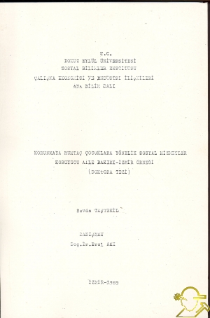 İÇİNDEKİLERİÇİNDEKİLERKISALTMALAR........................................... GİRİŞ................................................. I. KONUNUN TAKDİMİ .................................... II. SOSYAL GÜVENLİK KAVRAMI ............................. A, Sosyal Güvenliğin Tarihi Gelişimi................. B, Kavram Olarak Sosyal Güvenlik .................... C, Sistem Olarak Sosyal Güvenlik . .............. BİRİNCİ BÖLÜM SOSYAL HİZMET KAVRAMI ■ I, SOSYAL HİZMETLERİN SOSYAL .GÜVENLİK SİSTEMİ İÇİNDEKİ YERİ VE ÖNEMİ ............................. A. SOSYAL .SİGORTALAR .............................. 1. Tanım.......... 2. Sosyal Sigortaların Temel İlkeleri .......... B. SOSYAL YARDIMLAR ___-....... 1. Tanım .................................... 2. Sosyal Yardımlar Hakkında Çeşitli Görüşler....... C- sosyal hizmetıer ................. l. Tanım .................. 2. Sosyal Hizmetlerin Amaçları ve Bu Amaçlara. Ulaşma Yolları ....... 3. Sosyal Hizmetlerin Faaliyet Alanları 4. Sosyal Hizmet Programlarına Etki Eden Faktörler ve Sosyal Hizmetlerin Etki Alanları .... 5. Sosyal Hizmetlerin Temel Özellikleri II. SOSYAL HİZMETLERİN SOSYAL SİGORTALAR VE SOSYAL YARDIMLARLA İLİŞKİSİ A. SOSYAL HİZMET-SOSYAL SİGORTA İLİŞKİSİ ........ B. SOSYAL HİZMET-SOSYAL YARDIM İLİŞKİSİ .;............. III; TÜRKİYE'DE SOSYAL HİZMETLERİN DOĞUŞU VE GELİŞİMİ A, CUMHURİYET ÖNCESİ DÖNEMDE .......................... B. CUMHURİYET DÖNEMİNDE........ İKİNCİ BÖLÜM TÜRKİYE'DE KORUNMAYA MUHTAÇ ÇOCUKLARA YÖNELİK SOSYAL HİZMETLER I. KORUNMAYA MUHTAÇ ÇO CUK KAVRAMI.............. A, PSİKO-SOSYAL VE HUKUKİ AÇILARDAN-ÇOCUK KAVRAMI 1. Psiko-Sosyal Açıdan. Çocuk Kavramı 2. Hukuki Açıdan. Çocuk Kavramı ........... B. KORUNMAYA MUHTAÇ ÇOCUK KAVRAMI VE KORUNMAYA MUHTAÇ ÇO CUKLARLA İLGİLİ İŞLEMLER......... 1. Korunmaya Muhtaç Çocuk: Kavramı a.Tanım b. Korunmaya Muhtaç Çocuklarla İlgili İşlemler C.ÇOCUĞUN KORUNMAYA MUHTAÇ HALE GELME NEDENLERİ 1.Çocuğun Korunmaya Muhtaç Hale Gelmesine Yol. Açan Ailevi Nedenler a. Ailenin Çocuğun Bakım, Korunma ve Yetiştirilme-sindeki Rolü ve önemi b. Ailenin Çocuğun. Bakım, Korunma ve Yetiştirilmesinde Sahip Olduğu Fonksiyonlarının Azalması .......... c. Aileden Kaynaklanan ve Çocuğun Korunmaya Muhtaç Hale Gelmesine Yol Açan Başlıca Nedenler 2. Çocuğun Korunmaya Muhtaç Hale Gelmesine Yol Açan Çevresel Nedenler a. Çevresel Bir Unsur Olarak Okulun Çocuğun . Korunmaya Muhtaç Hale Gelmesindeki Etkisi b. Çocuğun Boş Zamanlarını Geçirdiği Birimlerin Korunmaya Muhtaç Hale Gelmesindeki Etkisi c* Basın ve Yayının Çocuğun Korunmaya Muhtaç Hale Gelmesinde Etkisi D. KORUMAYA MUHTAÇ. ÇOCUKLAR KONUSUNDA DEVLETİN SORUMLULUĞU II. ÇOCUK REFAH HİZMETLERİ A. ÇOCUK REFAH HİZMETLERİ VE ÇOCUK HAKLARININ KORUNMASI İv Çocuk Refah Hizmetlerinin Tanımı ve Başlıca Özellikleri 1. Çocuk Refah Hizmetlerinin tarihi Gelişimi ve Çocuk Hakları a. Genel Olarak ...,...... b. Uluslararası Düzeyde Çocuk Haklarının Korunması Faaliyetleri B. Aile Refah Hizmetleri 1. Aileye Yönelik Sosyal Hizmetlerin Tarihsel Gelişimi 2. Ülkemizde Aileye Yönelik Sosyal Hizmetler C. "KORUNMAYA MUHTAÇ ÇO CUKLARA SAĞLANAN BAKIM YÖNTEMLERİ .......................... 1. Kurum Bakımı a . Tanım b Kurum Tipleri ...... c. Kurum Bakımına Başvuru Nedenleri ve Kurum Bakımının Sakıncalı Yanları 2. Koruyucu Aile Bakımı b. Koruyucu Aile Türleri c. Koruyucu Aile Bakımının Sağladığı Faydalar d. Koruyucu Aile Bakımının Kurum Bakımı ile Karşılaştırılması e. Koruyucu Aile Bakımına İlişkin İşlemler f Koruyucu Aile Bakımını Sona Erdiren Haller 3. Evlât Edinme Müessesesi a. Tanım b. Evlât Edinme Koşulları c. Evlât Edinme Müessesesine İlişkin Olarak Sosyal Hizmet Uzmanlığının Rolü ve Önemi d. Evlât Edinme Müessesesine İlişkin İşlemler e.Evlât Edinmenin Sona Erme Şekilleri f. Evlât Edinmenin Hukuki ve Mali Sonuçları ÜÇÜNCÜ BÖLÜM KORUYUCU AİLE BAKIMI- İZMİR İLİ ÖRNEĞİ I. KORUYUCU AİLE BAKIMI -İZMİR İLİ ÖRNEĞİ'NE İLİŞKİN UYGULAMANIN TEMEL ÖZELLİKLERİ........____ A. UYGULAMANIN AMACI ..... B.. UYGULAMADA KULLANILAN YÖNTEM.................... II. KORUYUCU AİLELERİN VE BU AİLELER YANINDA BAKILAN KORUNMAYA MIJHTAÇ ÇOCUKLARIN SOSYO-EKONOMİK ÖZELLİKLERİ ..................................... A, KORUYUCU .AİLELERİN SOSYO-EKONOMİK ÖZELLİKLERİ........................ 1.Koruyucu Ailelerin Yaş Grupları Açısından İncelenmesi ............ 2. Koruyucu Ailelerin Meslek Grupları Açısından. İncelenmesi ............... 3. Koruyucu Ailelerin Ekonomik Düzeyleri Açısından İncelenmesi ............ 4. Koruyucu Ailelerin Mülk Sahibi Olmaları ya da Olmamaları Açısından incelenmesi 5. Koruyucu Ailelerin Evlilik Süreleri Açısından İncelenmesi ........... 6. Koruyucu Ailelerin Çocuk Sahibi Olmaları Açısından İncelenmesi KORUYUCU AİLELER YANINDA .BAKILAN KORUNMAYA MUHTAÇ ÇOCUKLARIN SOSYO-EKONOMİK ÖZELLİKLERİ ..... l. Koruyucu Aileler Yanında Bakılan Korunmaya Muhtaç Çocukların Cinsiyetleri Açısından İncelenmesi ............................... 2. Koruyucu Aileler Yanında Bakılan Korunmaya Muhtaç Çecukların Yaş Durumları Açısından İncelenmesi ....., 3. Koruyucu Aileler Yanında Bakılan Korunmaya Muhtaç Çocukların Sağlık Durumları Açısından Incelenmesi 4. Koruyucu Aileler Yanında Bakılan Korunmaya Muhtaç Çocukların Korunmaya Muhtaç Duruma Gelme Nedenleri Açısından İncelenmesi III- KORUYUCU AİLE OLMA ÖZELLİĞİNİ KAZANMA SÜRECİ VE KORUYUCU AİLELERİN SOSYAL HİZMETLER VE ÇOCUK ESİRGEME KURUMU İZMİR İL MÜDÜRLÜĞÜ İLE İLİŞKİLERİ ...............■____,.................. A. KORUYUCU AİLE OLMA ÖZELLİĞİNİ KAZANMA SÜRECİ ... 1. Ailelerin Koruyucu Aile Olma Kararına Ulaşma Şekilleri Açısınd