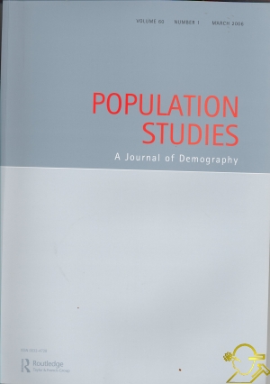İÇİNDEKİLERPOPULATION STUDIESA Journal of Demography CONTENTS VOLUME 60 NUMBER 1 MARCH 2006 M. GIOVANNA MERL1, Sara HERTOG, Bo WANG and Jing LI Jona SCHELLEKENS and Frans VAN POP PEL Modelling the spread of HTV/AIDS in China: The role of sexual transmission Religious differentials in marital fertility in The Hague (Netherlands) 1860-1909 Robert E SCHOENI, Jersey LIANG, Joan BENNETT, Hidehiro SUGISAWA. Taro FUKAYA and Erika KOBAYASHI Trends in old-age functioning and disability in Japan, 1993-2002 L.S. HURT, C. RONSMANS, S.L. THOMAS The effect of number of births in women's mortality: Systematic review of the evidence for women who have completed their childbearins Alessandro ROSINA Barthelemy KUATE-DEFO and Julie DAVANZO Jean-Marie ROBINE, Graziella CASELLL Domenica RASULO and Amandine COURNTL A model with long-term survivors for the analysis of current-status nupliality data Reliability of reasons for early termination of breastfeeding: Application of a bivariate probability model with sample selection to data from surveys in Malaysia in 1976-77 and 1988-89 Differentials in the femininity ratio among centenarians: Variations between northern and southern Italy from 1870 Book reviews Instructions for authors ![]() |