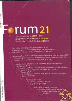 İÇİNDEKİLERForewordPreface Vorwort Youth in Action: a new programme for European young people __________ Jeunesse en Action: un nouveau programme pour La jeunesse europeenne Jugend in Aktion: ein neues europaisches Progratnm furjunge Leute_____ Greater Visibility and Coherence for European Youth Policy - the German EU Presidency in 2007________________________________________________. Pour une plus grande transparence et coherence de la politique Europeenne en faveur de la jeunesse - la Presidence aUemande du ConseiL de I'UE en 2007 ___ Mehr Sichtbarkeit und Koharenz fur die europaische Jugendpolitik - die deutsche EU-Ratsprasidentschaft 2007 ___________________________________ The European Youth Pact and its implementation in France, Germany. Spain and Swedet Le Pacte europeen pour La jeunesse et sa mise en ceuvre en France, Allemagne, Espagn et Suede Der Europaische Jugendpakt und seine Umsetzung in Frankreich, Deutschland, Spanien und Schweden The European Youth Pact Le Pacte europeen pour La jeunesse________________________ Der Europaische Jugendpakt Implementation of the European Youth Pact in France Mise en ceuvre du pacte europeen pour la jeunesse en France ______________ Die Umsetzung des Europaischen Jugendpaktes in Frankreich impLementation of the European Youth Pact in the Federal Republic of Germany - Midterm review and perspectives Mise en ceuvre du Pacte europeen pour la jeunesse en ALlemagne - Bitan provisoire et perspectives Die Imptementierung des Europaischen Jugendpakts in der BundesrepubLik Deutschland - Zwischenbilanz und Ausblick The Work of the Spanish Government and the Youth Institute for Implementing the European Youth Pact ____________________________________ L'action du gouvernement espagnoL et de L'lnstitut de la jeunesse concernant le Pacte europeen pour la jeunesse Sie Arbeit derspanischen Regierung und des Jugendinstitutes fur die Umsetzung des Europaischen Jugendpaktes Forum 21 The objectives of the European Youth Pact and Swedish National Youth Policy closely linked_____________________________________________________ Le Pacte europeen pour la jeunesse et la politique nationale de jeunesse Suedoise : des objectifs etroiternent lies Enge Verkniipfung der Ziele des Europaischen Jugendpaktes Mit der schwedischen nationalen Jugendpolitik The European Year of Citizenship through Education: "Learning and Living Democracy" L'Annee europeenne de la citoyennete par I'education : « Apprendre et vivre La democratie Das Europaische Jahr der Demokratieerziehung : ..Demokratie lernen und leben" Youth Policies in Belgium ______________________________________________________ Politiques de jeunesse en Belgique JugendpoLitiken in Belgien Youth Policy in the Flemish Community______________________________ La politique de jeunesse dans la Communaute flamande Jugendpolitik in der Flamischen Gemeinschaft The French Community in Belgium and its Youth Service La Communaute francaise de Belgique et son Service de la Jeunesse ___ Die Franzosische Gemeinschaft Belgiens und ihr Jugenddienst Youth Policy in the German-Speaking Community in Belgium La politique de la jeunesse de la Communaute germanophone de Belgique Die Jugendpolitik der Deutschsprachigen Gemeinschaft Belgiens ______ Youth Policy in Romania - The National Youth Authority La politique de jeunesse en Rournanie - L'Autorite nationale pour la jeunesse Jugendpolitik in Rumanien - Die Nationale Jugendbehorde ____________ Youth Research in Europe La recherche sur la jeunesse en Europe Jugendforschung in Europa The Finnish model and organising of youth research in EU member states _________ Le modele fintandais et I'organisation de la recherche sur la jeunesse dans les Etats rnembres de I'UE Das finnische Mod ell und die Organisation der Jugendforschung in EU-Mitgliedstaaten Youth Research in the Processes of European Integration La recherche sur La jeunesse dans le processus de ['integration europeenne Jugendforschung in den Prozessen der europaischen Integration .________________ EUYOUPART 2003-2005 Political Participation of Young People in Europe - Development of indicators for Comparative Research in the European Union________________________________ EUYOUPART 2003-2005 Participation politique des jeunes en Europe - Developpement d'indicateurs pour La recherche comparative dans I'Union europeenne EUYOUPART 2003-2005 Politische Beteiligung von Jugendlichen in Europa - Entwicklung von Indikatoren fur vergleichende Studien in der Europaischen Union Youth Research in France La recherche sur la jeunesse en France ________________________________ Die Jugendforschung in Frankreich What are the long-term personality effects of participating in international youth exchange? Quels sont les effets a long terme de La participation a des rencontres international de ieunes sur Le developpernent de la personnalite des participants ? Welche Langzeitwirkungen auf die Persbnlichkeit hat die Teilnahme an einem internationalen Jugendaustausch? ____________________________________ Youth political resolutions and documents Resolutions et documents de polit'tque de jeunesse Jugendpolitische Resolutionen und Dokumente European Union Resolution of the Council and of the Representatives of the Governments of the Membet| States, meeting within the Council, on the recognition of the value of non-formal and informal learning within the European youth field Union europeenne Resolution du Conseil et des representants des gouvernements des Etats membres, reunis au sein du Conseit, sur la reconnaissance de la valeur de I'education et de la formation non formelle et informelle dans le domaine de la jeunesse en Europe Europaische Union EntschlieRung des Rates und der im Rat vereinigten Vertreter der Regierungen der Mitgliedstaaten (Jber die Anerkennung des Wertes von nicht formalen und informeilerj Lernerfahrungen im europaischen Jugendbereich Austrian Presidency of the Council of the European Union Informal Meeting of Youth Ministers and Youth Ev