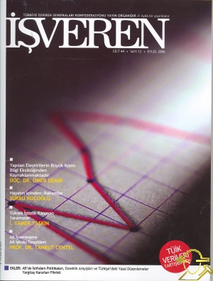 İÇİNDEKİLER6 BAŞKANDAN "AB Konusunda Yapmamız ve Yapmamamız Gerekenler11 TUĞRUL KUDATGOBİLİK 8 EDİTÖRDEN "Uzun İnce Yolun Ardından!..' BÜLENT PİRLER TİSK GENEL SEKRETERİ 9 NELER OLUYOR TÜRKİYE i6 GÖRÜŞ "Alt İşverenlere Ait İşkolu Tespitleri" PROF. DR. TANKUT CEKTEL İSTANBUL ÜNİVERSİTESİ HUKUK FAKÜLTESİ İŞ VE SOSYAL GÜVENLİK HUKUKU ANABİLİM DALI ÖĞRETİM ÜYESİ 20 ZOOM "Yapılan Eleştirilerir Büyük Kısmı Bilgi Eksikliğinden Kaynaklanmaktadır" TÜRKİYE İSTATİSTİK KURUMU BAŞKANI DOÇ. DR. ÖMER DEMİR 2J ZOOM "Hayatır İçinden: Rakamlar" ŞÜKRÜ KOÇOĞLU TİSK BAŞKAN VEKİLİ VE İNTES BAŞKANI V ZOOM "Büyüme TÜİK'in Söylediği Kadar İstikrarlı Devaır Etseydi, İşsizlik Sorun Olmaktan Çıkardı" SİNAN AYGÜN ATO YÖNETİM KURULU BAŞKANI 2Ç ZOOM 'TÜİK'in Detayda Boğulması" PROF DR. EKREM PAKDEMİRLİ BAŞBAKAN ESKİ YARDIMCISI 32 "Clinton İş Dünyasını Nereye Sürüklüyor?" SALİM KADIBEŞEGİL STRATEJİK İLETİŞİ* DANIŞMANI ORSA STRATEJİK İLETİŞİM DANİŞMANLİĞİ 34 SÖYLEŞİ 'Tarım ve Hayvancılık Sektörü Zor Durumda" ERDAL BAHÇIVAN TÜRKİYE SÜT, ET, GIDA SANAYİCİLERİ VE ÜRETİCİLERİ BİRLİĞİ (SETBİR) YÖNETİM KURULU BAŞKANI 39 SANAT "Bin Bir Ayla Destanı" AYLA ALGAh 42 İNSAN DİYE DİYE "Yönetici Seçimindeki Yanlışların Bedeli..." DR. SEMA ÖZÇER MAY DANIŞMANLIK 44 TİSK HABERLER 52 TARİHTE BU A^ 54 RÖPORTAJ "Yüksek İşsizlik Kanayan Sosyal Yaramızdır" İ. TAMER TAŞKIN EGE BÖLGESİ SANAYİ ODASI YÖNETİM KURULU BAŞKAN 60 ANALİZ "İşsizlikle Mücadelede Altın Üçgen: Esneklik, Güvence, Aktif İstihdam Politikaları" ESRA BELEN TİSK ARAŞTIRMA, EĞİTİM VE Dİ! İLİŞKİLER UZMANI 65 MOZAİK "İş Sağlığı ve Güvenliği İşyeri Örgütlenmesi" İSMAİL BAYER 68 ARKEOGEZİ "Kayıp Kent: MAGNESIA" MUTLL GÜNHAN BOZKURT 74 AVRUPA AVRUPA 76 İSTATİSTİK 7^ YENİ YAYINLAR