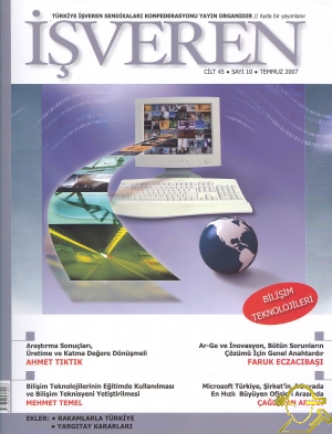 İÇİNDEKİLERBAŞKANDAN "Yeni Dönemde Sorunlarımız ve Beklentilerimiz" 4 • EDİTÖRDEN "İş Sağlığı ve Güvenliğinde AB'ye Uyum" ( NELER OLUYOR TÜRKİYE 7 ; ZOOM "Araştırma Sonuçlan Üretime ve Katma Değere Dönüşmeli" AHMET TIKTIK T.C. BAŞBAKAN DEVLET PLANLAMA TEŞKİLATI MÜSTEŞARI 1 7 * ZOOM "Bilişim Teknolojilerinin Eğitimde Kullanılması ve Bilişim Teknİs) Yetiştirilmesi" MEHMET TEMEL MİLLİ EĞİTİM BAKANLIĞI MÜSTEŞAR VEKİLİ 2J * ZOOM "Ar-Ge ve İnovasyon, Bütün Sorunl. Çözümü İçin Genel Anahtardır" FARUK ECZACIBAŞI ECZACIBAŞl HOLDİNG A.Ş. YÖNETİM KURULU BAŞKAN YARDİMCİSİ 28 ZOOM "Özel Eğitim Kurumları, Bilişime ve Diğer Sektörlere Eleman Yetiştirmektedir" CANSIN KAVUKÇU İNAN TÜM ÖZEL EĞİ KURUMLARI İŞVERENLERİ SENDİKASI (TEKİS) YÖNETİM KURULU BAŞKANI,?! *■ ZOOM "Bilgi Toplumuna Dönüşümü Hedefle Ülkemizde Bilişim Altyapısının Geliştirilmesi İçin Çalışılmadır" ALTAY ELBEK BİLGİ VE İLETİŞİM TEKNOLOJİLERİ İŞVERENLERİ SENDİK (BİTİŞ) YÖNETİM KURULU BAŞKANI 34 e ZOOM "AB, Çerçeve Programlan, Bize Avrupa'nın Ar-Ge Platformlarının Şekillen Kulübe Giriş Hakkı Sunmaktadır" HÜSEYİN GÜLER TÜBİTAK 7. ÇERÇEVE PROGRAMI ULUSAL KOORDİNATÖRÜ 57 ff ZO "UNAM-Malzeme Bilimi ve Nanoteknoloji Enstitüsü'nün Amaçlan ve Faaliyetleri" PROF. DR. SALİM ÇIRACI BİLKENT ÜNİVERSİ" FİZİK BÖLÜMÜ BAŞKANI UNAM PROJE YÖNETİCİSİ 40 • ZOOM "ODTÜ-Teknokent'in Başarısı Üretilen Bilgi ve Rekabet Güci Ölçülmektedir" UĞUR YÜKSEL ODTÜ TEKNOKENT GENEL MÜDÜRÜ 43 * ZOOM "TTGV, 1991'den Bu Yana 550'nİn Üzeri Projeye Toplam 135 Milyon ABD Doları Katkı Sağlamıştır" DR. A. METE ÇAKMAKÇI TÜRKİYE TEKNOLOJİ GELİŞTİRME VAKFI (TT GENEL SEKRETER YARDİMCİSİ 45 * ZOOM "Türkiye'nin Bilişime Uzanan Köprüsü: Türkiye Bilişim Derneği..." TURHAN MEN TÜRKİYE BİLİŞİMDERNEĞİYÖNETİMKURULUBAŞKANI47* ATATÜRK 125 YAŞINDA... "Cumhuriyetle Yaşıt Bir Ankaralı'danZ. Abidesi ve Atatürk" HALİL MAKARACI EMEKLİ AVUKAT 49 * KADINLAR VE GENÇLERİ^ • SÖYLEŞİ "Mİcrosof Türkiye, Şirke Dünyada En Hızlı Büyüyen Ofisleri Arasında" ÇAĞLAYAN ARKAN MİCROSOFT TÜRKİYE GENEL MÜDÜRÜ 54 • SANAT "Ekslil Geniş Bir Anlatım ve Yaratıcılık Fırsatı Veriyor" HASİP PEKTAŞ ANKARA EKSLİBRİS DERNEĞİ BAŞKANI 58 • TİSK HABERLER :i KIDEM TAZMİNATI TAVANI DEĞİŞTİ 65 • YÜZDE ON İŞKOLU BARAJİNİ AŞAN SENDİKALAR 66 • AVRUPA AVRUPA 6 TARİHTE BU AY 70 : MOZAİK "84 Yaşındaki Delikanlının Yaşamındaki Renkler" İSMAİL BAYER 72 * ARKEOGEZİ "Efsan Diyarı Gordion" 74 * İSTATİSTİK 78 • YENİ YAYINLAR