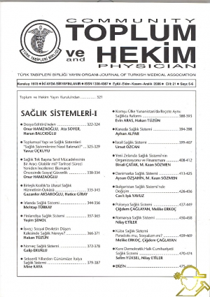 İÇİNDEKİLERToplum ve Hekim Yayın Kurulu'ndanSAĞLIK SİSTEMLERİ-I • Dosya Editörü'nden 322-324 Onur HAMZAOGLU, Ata SOYER, Harun BALCIOĞLU • Toplumsal Yapı ve Sağlık Sistemleri "Sağlık Sistemlerine Nasıl Bakmalı?". . 325-329 Yavuz ÜÇKUYU • Sağlık Tek Başına Sınıf Mücadelesinin Bir Aracı Olabilir mi? Tarihsel Süreci Yeniden İnceleme: Bismarck Öncesinde Sosyal Güvenlik OnurHAMZAOGLU • Birleşik Krallık'ta Ulusal Sağlık Hizmetinin Öyküsü335-343 Gazanfer AKSAKOGLU, Hatice GİRAY • irlanda Sağlık Sistemi344-356 Mehtap TÜRKAY • Finlandiya Sağlık Sistemi Yeşim ŞENOL 357-365 • İsveç: Sosyal Devletin Düşen Kalesinde Sağlık Nereye Hakan TUZUN • Norveç Sağlık SistemiGalip EKUKLU 372-378 • Seksenli Yıllardan Günümüze İtalya Sağlık Sistemi Mine KAYA • Komşu Ülke Yunanistan'da Reçete Aynı: Sağlıkta Reform Evin ARAŞ, Hakan TÜZÜN • Kanada Sağlık Sistemi Ayhan ALPAR • İsrail Sağlık Sistemi........................... 399-407 Umut ÖZCAN • Yeni Zelanda Sağlık Sistemi'nin Organizasyonu ve Finansmanı Binali ÇATAK, M. Kaan SÖZMEN • Danimarka Sağlık Sistemi Aysun ÖZŞAHİN, M. Kaan SÖZMEN • Bulgaristan Sağlık Sistemi'nde Değişim 426-436 Cavit Işık YAVUZ • Polonya Sağlık Sistemi Çiğdem ÇAĞLAYAN, Melike ERKOÇ • Romanya Sağlık Sistemi Nilay ETİLER • Küba Sağlık Sistemi Paradoks mu, Sosyalizm mi? Melike ERKOÇ, Çiğdem ÇAĞLAYAN • Kore Demokratik Halk Cumhuriyeti Sağlık Sistemi Selim YÜKSEL, Nilay ETİLER • DİZİN ![]() |