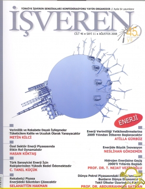İÇİNDEKİLER• BAŞKANIJAINÎ "Türkiye'nin ve Dünyanın Gündeminde Enerji Sorunları" 4 *EDİTÖRDEN "Ekonomide Kötü işaretler" 6 • NELER OLUYOR TÜRKİYE 8 •ZOOM "Verimlilik ve Rekabete Dayalı iyileşmeler Tüketicilere Kalite ve Ucuzluk Olarak Yansıyacaktır" METİN KİLCİ ÖZELLEŞTİRME İDARESİ BAŞKANI 19 * ZOOM "Özel Sektör Enerji Piyasasında Etkin Rol Oynamalıdır" HASAN KÖKTAŞ ENERJİ PİYASASI DÜZENLEME KURUMU (EPDK) BAŞKANI 21 * ZOOM "Türk Sanayicisi Enerji için Rakiplerinden Yüksek Bedel Ödemektedir" C. TANIL KÜÇÜK İSTANBUL SANAYİ ODASI YÖNETİM KURULU BAŞKANI 24 • SÖYLEŞİ "Rekabetçi Piyasa Enerjideki Sıkıntıları Çözecektir" SELAHATTİN HAKMAN ENERJİSA GENEL MÜDÜRÜ 26 • ZOOM "Enerji Verimliliği Yetkilendirmelerine 2009 Yılından İtibaren Başlanacaktır" ATİLLA GÜRBÜZ ELEKTRİK İŞLERİ ETÜT İDARESİ GENEL MÜDÜR YARDIMCISI 30• ZOOM "Enerjide Büyük inovasyon" NESLİHAN GÖKDEMİR KURUCU, ULUSAL ENERJİ FORUMU BAŞKANI 32 • ZOOM "Hidrojen Enerjisine Geçiş 2000'li Yıllarda Başladı" PROF. DR. NEJAT VEZİROĞLU MIAMI ÜNİVERSİTESİ TEMİZ ENERJİ ENSTİTÜSÜ BAŞKANI 38 * ZOOM "Dünya Petrol Piyasasındaki Dalgalanmalar, Bunların Dünya Ekonomisi ve Tekil Ülkeler Üzerindeki Etkileri" PROF. DR. ABDURRAHMAN SATMAN İTÜ ENERJİ ENSTİTÜSÜ MÜDÜRÜ 44 • SANAT "Tualdeki Yaşam Kesitleri..." MONAD BALKAN 47 *YAZI DİZİSİ: MADEN "Türkiye'de Jeotermai Enerji Çalışmaları" 50 *GÖRÜŞ "Küresel İsınmayı Azaltmada Herkesin Yapabileceği İlk 10 Şey" PROF. DR.MUAMMER KAYA ESKİŞEHİR OSMANGAZİ ÜNİVERSİTESİ TEKNOLOJİ ARAŞTIRMA MERKEZİ (ESOGÜ-TEKAM) MÜDÜRÜ 53 * ARAŞTIRMA "Sosyal Güvenlik Mevzuatı Uyarınca İşyeri Kayıtlarının İbrazı" EKREM TAŞBAŞI SOSYAL GÜVENLİK KURUMU MÜFETTİŞİ 55 * AVRUPA AVRUPA 59 TARİHTE BU AY 62 ARKEOGEZİ "Ankara'da Yüzyıllar öncesinden Kalan Roma izleri..." 64 * İSTATİSTİK 67