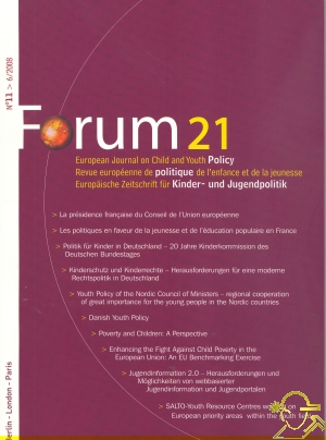 İÇİNDEKİLERForeword p. 5Preface p. 6 Vorwort p. 7 French Presidency of the Council of the European Union__p. 8 La prestdence franchise du Conseil de I'Union europeenne ___p. 12 Franzosische Prasidentschaft des Rats der Europaischen Union p.16 Policies in favour of youth and community education in France Les politiques en faveur de la jeunesse et de 1'education populaire en France___p. 20 Die Politiken fur Jugend und Volksbildung in Frankreich Policy-Making for Children in Germany - 20th Anniversary of the Children's Committee of the Deutscher Bundestag La politique de I'enfance en Allemagne - La Commission parlementaire des enfants fete ses vingt ans Politik fur Kinder in Deutschland - 20 Jahre Kinderkommission des Deutschen Bundestages___p. 36 Child Protection and Child Rights - Challenges for a Modern Legal Policy in Germany La protection de I'enfance et les droits des enfants : les defis que doit relever une politique juridique moderne en Allemagne Kinderschutz und Kinderrechte - Herausforderungen fur eine moderne Rechtspolitik in Deutschland___p. 42 Youth Policy of the Nordic Council of Ministers - regional cooperation of great importance for the young people in the Nordic countries ___p. 50 La politique de jeunesse du Conseil nordique des ministres - La cooperation regionale au profit de la jeunesse des pays nordiques Jugendpolitik des Nordischen Ministerrates - eine regionale Kooperation von grofier Bedeutung fur Jugendliche in den nordischen Landem Danish Youth Policy ___p. 58 La politique de jeunesse danoise Die danische Jugendpolitik Poverty and Children: A Perspective _____p.72 La pauvrete des enfants: une perspective Armut und Kinder: eine Perspektive Enhancing the Fight Against Child Poverty in the European Union: An EU Benchmarking Exercise _ p.84 Intensifier la lutte contre la pauvrete des enfants dans I'Union europeenne : un exercice de comparaison a I'echelle de l'UE Verstarkte Bekampfung der Kinderarmut in der Europaischen Union: Ein EU-Benchmarkingprojekt Youth Information 2.0 - Challenges and Opportunities of Web Based Youth Information and Youth Portals Information des jeunes 2.0 - Defis et possibilites de I'information des jeunes et des portails pour jeunes fondes sur le Web Jugendinformation 2.0 - Herausforderungen und Moglichkeiten von webbasierter Jugendinformation und Jugendportalen _____ p.100 SALTO-Youth Resource Centres working on European priority areas within the youth field _______ p. 106 Les centres de resources SALTO-Jeunesse travaillant sur les priorites europeennes dans le secteur de la jeunesse SALTO-Jugendressourcenzentren arbeiten an prioritaren Aufgaben fur Europa im Jugendbereich Youth political events, resolutions and documents Manifestations, resolutions et documents de politique de jeunesse Jugendpolitische Events, Resolutionen und Dokumente EU Education, Youth Affairs and Culture Council_____ p.117 Conseil Education, Jeunesse et Culture de I'UE____ p. 121 EU Rat Bildung, Jugend und Kultur________________ p.125 Council of Europe Parliaments United in Combating Domestic Violence against Women___ p.131 Conseil de I'Europe - Les parlements unis pour combattre la violence domestique a regard desfemmes_________ p.135 Europarat - Die Parlamente vereint bei der Bekampfung der hauslichen Gewalt gegen Frauen________ p.139 United Nations in the Russian Federation - "Demographic Policy in Russia: from Reflection to Action"____ p.143 Les Nations unies dans la Federation de Russie - « La politique demographique en Russie : de la reflexion a I'action »__ p.151 Die Vereinten Nationen in der Russischen Foderation "Die demografische Politik in Russland: Von der Reflexion zur Aktion"______ p.161 Commonwealth Youth Ministers Meeting 2008________ p.171 Reunion 2008 des ministres de la Jeunesse du Commonwealth___________________________ p.177 Konferenz der Commonwealth-Jugendminister 2008____________________________________ p.185 News_________________________________________ p.193 Actuates_____________________________________ p.193 Kurzmeldungen________________________________ p.193 Information on IJAB, NYA, INJEP______________ p.235 Information sur I'UAB, la NYA, I'lNJEP__________ p.235 Information Ciber IJAB, NYA, INJEP__________________ p.235 NOTLARNo:11 ![]() |