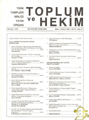 İÇİNDEKİLERToplum Hekim Yayın Kurulu'ndanDosya: BİRİNCİ BASAMAK SAĞLIK HİZMETLERİ • Birinci Basamak Yağmasından Arta Kalanlar: Pek Az 224; Birkaç Yüz Aile Hekimi; Ama Daha Çok Da Kötü Yönetim/ İlker BELEK • Temel Sağlık Hizmetleri; Politik ve İdeolojik Bir Yaklaşım/ Mehtap TATAR • Sağlık Bakanlığı'nda Ürkütücü Gelişmeler (ya da: Ürperten Gerilemeler)/ Gazanfer AKSAKOĞLU • Türkiye'de Birinci Basamak Sağlık Hizmetleri Durum/ İlker BELEK - Hülya ERMİŞ • SSK Birinci Basamak Tedavi Hizmetleri ve İşyeri Hekimliği/ Suat KAPTANER • İşyeri Hekimliği Birinci Basamak Hekimliğidir/ Ekrem KUTBAY, Muzaffer ESKİOCAK, Ersin YARIŞ • Temel Sağlık Hizmetleri Yaklaşımının Vazgeçilmez Öğesi: Toplum Katılımı/ Mehtap TATAR • Sağlık Hizmetlerinin Gelişmesi Açısından Eğitim ve Araştırma Bölgeleri/ Zafer ÖZTEK • Avrupa Ülkelerinde Birinci Basamak Sağlık Örgütlenmesinin Kimi Özellikleri/ VVİenke G. W. BOERMA (Çeviri: İlker BELEK) • Ayrı Bir Tıp Disiplini Olarak Genel Pratisyenlik Kurumsallaşma - Mesleki Eğitim - Uygulama TTB Pratisyen Hekimler Kolu• Birinci Basamak ve Aile Hekimliği/ TTB Raporu • Sağlık Hizmetlerinin Sunumunda Pratisyen Hekiminin Yeri ve Sorunları/ Gülseren AĞRIDAĞ • Çağdaş Bir Uzmanlık: Genel Pratisyenlik ya da Aile Hekimliği/ Dilek GÜLDAL • Aile Hekimliği Konusunda Yanıt Arayan Sorular/ Çağrı KALAÇA SAĞLIK POLİTİKALARI - SAĞLIK ÖRGÜTLENMESİ • Devlet ve Sağlık/ Caner FİDANER • Yabancı Hekim Sorunu: Aykırı Bir Bakış/ Caner FİDANER • Sağlıklı Kentler Hareketi Üzerine/ Pınar OKYAY, Türkan GÜNAY • Bilgisayarlı Tomografi Cihazının Sayısal Durumunun İncelenmesi/ Semih SEMİN, Zuhal AMATO • Tabip Birlikleri ve Dünya Sağlık Örgütü Avrupa Forumu/ Özen AŞUT • İşyeri Hekimliği Sertifika Uygulamaları/ Şükrü GÜNER • Türkiye'de Sağlıkta Özelleştirme/ Ato SOYER • Sağlık Hizmetleri Verimli ve Aynı Zamanda Eşit Olarak Verilebilir mi?/ M. Hulki UZ • SAYILARIN DİLİ • DERGİLERDEN ![]() |