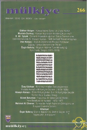 Gökhan Atılgan / Küreselleşme Süreci ve Ulusal Kültür Mustafa Durmuş / Küresel Kapitalizm Krizden Çıkıyor mu? B. Ali Eşiyok/ Osmanlı İmparatorluğu'nun Dünya Ekonomisine Eklemlenmesinde Bir Dönüm Noktası: 1838 Serbest Ticaret Anlaşması İrfan Kalaycı / Atatürk Döneminde Parasal Politikalar: