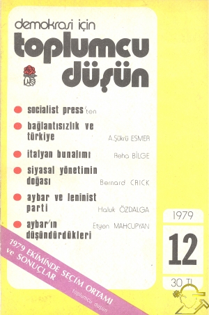 İÇİNDEKİLER1979 EKİMİNDE SEÇİM ORTAMI ve SONUÇLARBağlantısızlık ve Türkiye A. Şükrü ESMER İtalyan Bunalımı Reha BİLGE Siyasal Yönetimin Doğası Bernard CRICK Aybar ve Leninist Parti Haluk ÖZDALGA Aybar'ın Düşündürdükleri Etyen MAHCUPYAN ![]() |