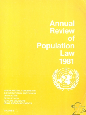 İÇİNDEKİLERABBREVIATIONSEDITOR'S PREFACE INTRODUCTION ACKNOWLEDGEMENTS APPENDICES Appendix I (Beijing Declaration on Population and Development) Appendix II (Conclusions and Recommendations of the Parliamentary Conference on Population and Development in Africa Appendix III(Selective Bibliography of Publications on Law and Population, 1980-1981) Appendix IV (Book Reviews) LAWS LISTED BY SUBJECT 000 GENERAL POPULATION POLICY .United Nations General Assembly .United Nations Economic and Social Council .Brazil .China .Colombia .Fiji .India .Paraguay .Portugal .Senegal .Sierre Leone .Thailand .Uganda .United States of America .Zimbabwe -100 FERTILITY REGULATION 110 CONTRACEPTION .Czechoslovakia .France .Malaysia .Netherlands .Senegal .United Kingdom of Great Britain and Northern Ireland .United Republic of Cameroon .United States of America -120 STERILIZATION .Philipipines .Switzerland .Thailand .United States of America -130 ABORTION .Council of Europe - European Commission of Human Rights Organization of American States - Inter-American Comission Human Rigts .Human Rights .Canada .France .Hong Kong (See Territory of Hong Kong) .Italy .Kuwait .Netherlands .Peru .Senegal .Seychelles .Singapore .Territory of Hong Kong .Thailand .Togo .United Republic of Cameroon .United States of America .Vanuatu -200 FAMILY TATUS AND WELFARE 210 MARRIAGE .Albania .Iraq .Mauritius .Nigeria .Spain .Thailand .Zaire -220 TERMINATION OF MARRIAGE .Angola .Barbados .Canada .Czechoslovakia .France .Germany, Federal Republic of .India .Mauritius .Netherlands .New Zealand .Spain .Trinidad and Tobago .Tunisia .United States of America -240 RIGHTS OF SPOUSES WITHIN MARRIAGE .Australia .Bangladesh .Belgium .New Zealand .Nicaragua .Spain .Trinidad and Tobago .United Kingdom of Great Britain and Northern Ireland .United States of America -300 CHILDREN AND CHILD WELFARE 310, 320 SUPPORT AND PROTECTION OF CHILDREN .United Nations General Assembly .United Nations Economic and Social Council .United Nations - World Health Organization .European Communities - Parliament .Botswana .Canada .Colombia .Ethiopia .Finland .France .Germany, Federal Republic of .Ghana .Guatemala .Luxembourg .New Zealand .Nicaragua .Norway .Pakistan .Paraguay .Peru .Portugal .Sao Tome and Principe .Seychelles .Spain .Sweden .Thailand .Trinidad and Tobago .Union of Soviet Socialist Republics .United Republic of Tanzania .United States of America -340 FILIATION OF CHILDREN .Australia .Cyprus .Germany, Federal Republic of .Peru .Spain .Trinidad and Tobago .Turkey .United States of America -360 OTHER LAWS AFFECTING PARENTS AND CHILDREN .United Nations - International Labour Organise .France .Portugal .Switzerland .United States of America -500 PUBLIC WELFARE 310 FAMILY ALLOWANCES GENERALLY .Central African Republic .Chile .Finland .France .Iraq .Israel .Italy .Libyan Arab Jamahiriya .Poland .Sweden .Tunisia .Union of Soviet Socialist Republics .United Republic of Cameroon .Uruguay -520 HOUSING ASSISTANCE PROGRAMMES .Cyprus .France .Philippines .Seychelles .United States of America -530 MATERNITY LEAVES AND BENEFITS .Belize .Central African Republic .Finland .France .Grenada .Hong Kong (See Territory of Kong Kong) .India .Ireland .Libyan Arab Jamahiriya .Luxembourg .Malta .Netherlands .New Zealand .Portugal .Territory of Hong Kong .Union of Soviet Socialist Republics .United States of America .Uruguay -540 OLD-AGE, RETIREMENT AND DEATH BENEFITS .Arab States .Nordic States .Argentina .Austria .Belgium .Belize .Central African Republic .Chile .Finland .France .Hong Kong (See Territory of Hong Kong) .Hungary .India .Israel .Japan .Libyan Arab Jamahiriya .Panama .Poland .Solomon Islands .Spain .Sweden .Territory of Hong Kong .Tunisia .Union of Soviet Socialist Republics .United states of America -560 LABOUR PROTECTION AND EMPLOYMENT STANDARDS .Belgium .Cape Verde .China .Cuba .France .Ireland .Israel .Kenya .New Zealand .Peru .Poland .Portugal .Senegal .Spain .Tunisia .Union of Soviet Socialist Republics .United Kingdom of Great Britain and Northern Ireland .United States of America -570 PERSONAL STATUS .United Nations General Assembly .United Nations Economic and Social Council .United Nations - Human Rights Committee .Austria .Cape Verde .Colombia .France .Guyana .India .Israel .Italy .Japan .Kenya .Mauritius .Netherlands .Paraguay .Portugal .Saint Vincent and the Grenadines .Sweden .Switzerland .Thailand .United Kingdom of Great Britain and Northern Ireland .United States of America -580 PERSONAL MOBILITY .United Nations - Human Rights Committee .Nordic States .Algeria - France .Algeria .Bahrain .Cape Verde .France - Algeria .France .Haiti - United States of America .Hong Kong (See Territory of Hong Kong) .Kiribati .Mauritius .Papua New Guinea .Paraguay .Portugal .Sweden .Territory of Hong Kong .United Kingdom of Great Britain and Northern Ireland .United States of America - Haiti .United States of America .Upper Volta -600 PUBLIC HEALTH 610 HEALTH SERVICES AND INSURANCE .United Nations - World Health Organization .European Communities - Parliament .Afghanistan - Hungary .Australia .Cape Verde .Cayman Islands .Colombia .Cyprus .France .Greece - Syrian Arab Republic .Guyana .Hungary - Afghanistan .Hungary - Jordan .India. .Israel .Ivory Coast .Jordan-Hungary .Libyan Arab Jamahiriya .Mali .Paraguay .Portugal .Sao Tome and Principe .Senegal .Spain .Sri Lanka .Switzerland .Syrian Arab Republic - Greece .Syrian Arab Republic .Tunisia .United Kingdom of Great Britain and Northern Ireland .United Republic of Cameroon .United States of America -643 REGULATION OF NON-PHYSICIAN HEALTH PERSON .Algeria .Denmark .France .Niger .Paraguay .Sao Tome and Principe .Spain .Thailand .United Kingdom of Great Britain and Norther .Zimbabwe -70O EDUCATION 710, 720 FREE AND COMPULSORY EDUCATION .Barbados .Cyprus .Lesotho -740 ADULT AND VOCATIONAL EDUCATION .Algeria - France .Cape Verde .France - Algeria .France .Union of Soviet Socialist Republics -770 POPULATION AND SEX EDUCATIO