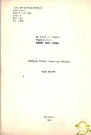 Kitap : Hekimlik Dilinin Türkçeleştirilmesi, Türk Tıp Derneği Dergisi, 8/42