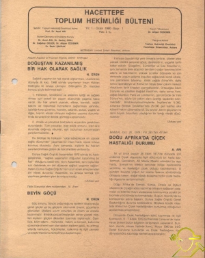 Hacettepe Toplum Hekimliği Bülteni Sayı:1