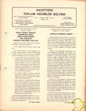 Kitap : Hacettepe Toplum Hekimliği Bülteni Sayı: 3
