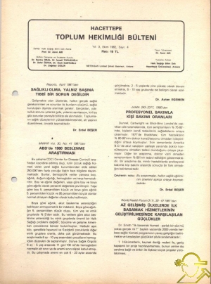 Hacettepe Toplum Hekimliği Bülteni Yıl: 3 Sayı: 4