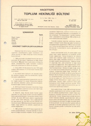 Hacettepe Toplum Hekimliği Bülteni Yıl: 5 Sayı: 2