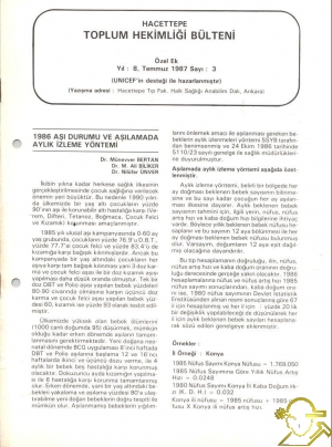 Kitap : Hacettepe Toplum Hekimliği Bülteni Yıl: 8 Sayı: 3 Özel Ek