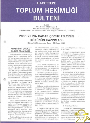 Kitap : Hacettepe Toplum Hekimliği Bülteni Yıl: 9 Sayı: 4 Özel Ek