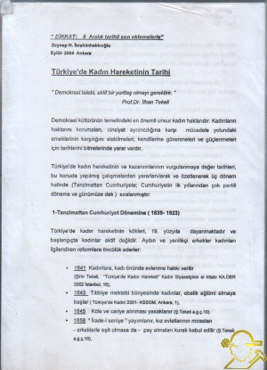 TÜRKİYE'DE KADIN HAREKETİNİN TARİHİ