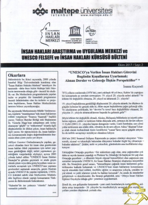 İNSAN HAKLARI ARAŞTIRMA VE UYGULAMA MERKEZİ VE UNESCO FELSEFE VE İNSAN HAKLARI KÜRSÜSÜ BÜLTENİ