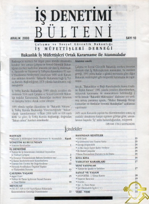 İÇİNDEKİLERBAŞYAZIBakanlık İş Müfettişleri Ortak Kararname İle Atanmalıdır. YÖNETİM KURULUNDAN Yönetim Kurulundan İŞ DENETİMİ Türkiye'de İş Denetiminin Hukuksal Dayanakları ve Tarihsel Gelişimi İş Denetim Yöntemlerinde Reform Gerekiyor mu? İş Kazası İncelemelerinde Kusurlandırma Ücretsiz İzin Üzerine Bir Değerlendirme Dünyada Sendikaların Örgütsel Yapıları ve Türkiyedeki Durumu ÇALIŞMA YAŞAMI Asgari Ücret Türkiye'de Tarım İşçilerinin Sayısal Durumu ve Yasal Hakları MEVZUAT 616,617,618 ve 619 Sayılı Kanun Hükmünde Kararnamelerin Getirdiği Düzenlemeler BASINDAN KESİTLER KHK İptali İş Güvencesi Yasa Tasarısı Sarktı Gereği Düşünüldü 44 Bin Geçici İşçiye Kadro Veriliyor İlk Hedef Çalışanlar Kamu Personelinin Durumu yada Dramı KISA KISA YARGITAY KARARLARI YENİ YAYINLAR Türkiye'de İşsizlik ve İstihdam SANAT VE YAŞAM ANI-PORTRE: i. Yılmaz Kumru Yaşamın Karayüzü Dostlar Şiir - İhsan Baran Şiir Ülkesindeki İşçiler(1) VERİ VERİ ![]() |