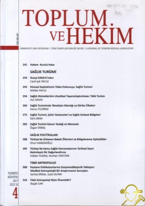 İÇİNDEKİLERHakem Kurulu'ndanSAĞLIK TURİZMİ Dosya Editörü'nden Cavit Işık YAVUZ Küresel Kapitalizmin Tıbba Dokunuşu: Sağlık Turizmi Melike YAVUZ Sağlık Hizmetlerinin Ulusötesi Taşeronlaştırılması: Tıbbi Turizm Aslı DAVAS Sağlık Turizminde Yönetişim Mantığı ve Körfez Ülkeleri Kansu YILDIRIM Sağlık Turizmi, Şehir Hastaneleri ve Sağlık Serbest Bölgeleri Ebru BASA Sağlık Turizmi Kanun Taslağı ve Mevzuatı Özgür ERBAŞ SAĞIK POLİTİKALARI Türkiye'de Gizlenen Bebek Ölümleri ve Bölgelerarası Eşitsizlikler Onur HAMZAOĞLU Türkiye'de Kamu Sağlık Harcamalarının Tarihsel Seyri: Betimleyici Bir Değerlendirme Volkan YILMAZ, Nurhan YENTÜRK TIBBİ ANTROPOLOJİ Hastane Enfeksiyonlarına Sosyomedikojenik Yaklaşım: Medikal ANtropolojik Bir Araştırmanın Sonuçları Serhat ERDAL, İzzet DUYAR Tıbbi Antropoloji Niçin Önemlidir? Başak CAN ![]() |