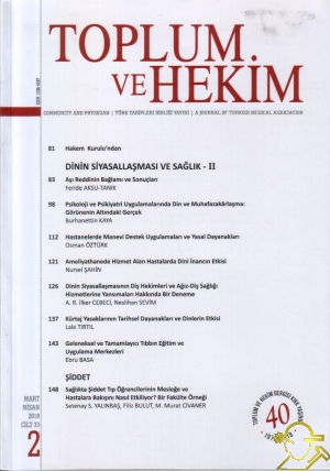 İÇİNDEKİLERHakem Kurulu'ndanDİNİN SİYASALLAŞMASI VE SAĞLIK - II Aşı Reddinin Bağlamı ve Sonuçları Feride AKSU - TANIK Psikoloji ve Psikiyatri Uygulamalarında Din ve Muhafazakârlaşma:Görünenin Altındaki Gerçek Burhanettin KAYA Hastanelerde Manevi Destek Uygulamaları ve Yasal Dayanakları Osman ÖZTÜRK Ameliyathanede Hizmet Alan Hastalarda Dini İnancın Etkisi Nursel ŞAHİN Dinin Siyasalllaşmasının Diş Hekimleri ve Ağız Diş Sağlığı Hizmetlerine Yansımaları Hakkında Bir Deneme A.R. İlker CEBECİ, Neslihan SEVİM Kürtaj Yasaklarını Tarihsel Dyanakları ve Dinlerin Etkisi Lale TIRTIL Geleneksel ve Tamamlayıcı Tıbbın Eğitim ve Uygulama Merkezleri Ebru BASA ŞİDDET Sağlıkta Şiddet Tıp Öğrencilerinin Mesleğe ve Hastalara Bakışını Nasıl Etkiliyor? Bir Fakülte Örneği Setenay S. YALINBAŞ, Filiz BULUT, M. Murat CİVANER ![]() |