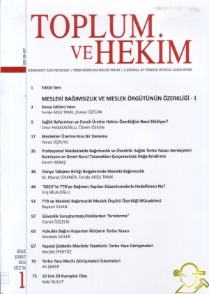 İÇİNDEKİLEREditör’denMESLEKİ BAĞIMSIZLIK VE MESLEK ÖRGÜTÜNÜN ÖZERKLİĞİ – I Dosya Editörü’nden Feride AKSU TANIK, Osman ÖZTÜRK Sağlık Reformları ve Esnek Üretim Hekim Özerkliğini Nasıl Etkiliyor? Onur HAMZAOĞLU, Özlem ÖZKAN Meslekler Üzerine Kısa Bir Deneme Yavuz ÜÇKUYU Profesyonel Mesleklerde Bağımsızlık ve Özerklik: Sağlık Torba Yasası Gerekçeleri Komisyon ve Genel Kurul Tutanakları Çerçevesinde Değerlendirme Kasım AKBAŞ Dünya Tabipler Birliği Belgelerinde Mesleki Bağımsızlık M. Murat CİVANER, Feride AKSU TANIK “6023"te TTB'ye Rağmen Yapılan Düzenlemelerle Hedeflenen Ne? Eriş BİLALOĞLU TTB ve Mesleki Bağımsızlık Meslek Örgütü Özerkliği Mücadelesi Bayazıt İLHAN Güvenlik Soruşturması/Haklardan “Arındırma” Ziynet ÖZÇELİK Hukukla Bağını Kopartan İktidarın Torba Yasası Mustafa GÜLER Yapısal Şiddetin Mecliste Tezahürü: Torba Yasa Görüşmeleri Necdet İPEKYÜZ Torba Yasa Meclis Görüşmeleri İzlenimleri Ali ŞEKER 19 Lira 20 Kuruşluk Olay Naki BULUT ![]() |